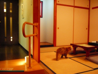 宿泊客の餌付けが日課となっているせいか、人の気配を感じると集まってきます。 |