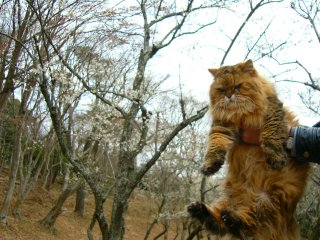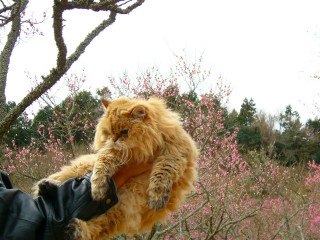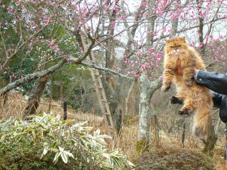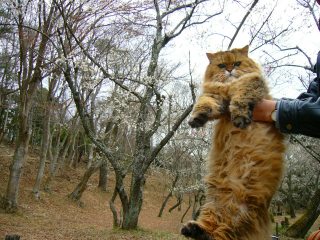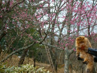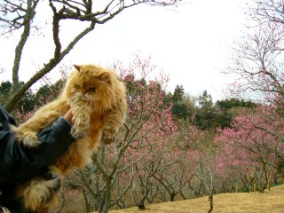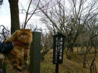 ルソー「やはり、エネルギーを充電するには、旬のものに限るなぁ。ボクも梅から元気をもらうぞ」 梅林には、樹齢100年を越える古木から、若木まであります。 |