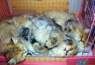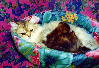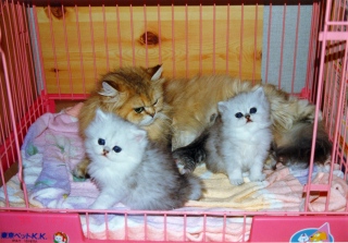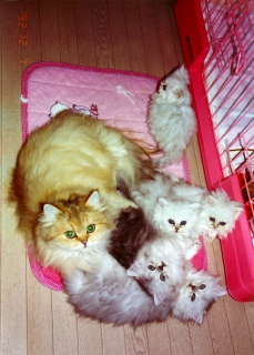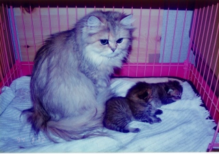 母乳が出なくても、かいがいしく子供たちの世話をしていたモネ。母性本能が強く、世話好きで、しっかり者でした。生涯、4度の出産で8匹の子を育て上げました。 ルソーとの間に、ゴールデン7匹、ミケランジェロとの間にシルバー1匹をもうけました。 |