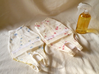 元気になったら、またみんなで旅に出ようと誓い、用意した旅行用の介護服。結局、袖を通すことはありませんでした。 コロイダルシルバー水溶液の入ったスプレーボトル。モネのお気に入りでした。これでスプレーをすると、「もっとスプレーして!」と催促するのです。顔はビショビショになり、ビーバーのようになりました。「ビーバー」と言うと、モネも「ワーワー(ビーバー)」と言って、喜んでいました。介護服を着替える時の”ビーバータイム”。こんな苦しい状況でも、それを受け入れて、楽しもうとするモネの姿勢に、胸を打たれるものがあります。 最後の2週間は、寝たきりの状態でしたが、それでも自力で立ち上がり、トイレに入る・・・ 最後まで自立心の強い子でした。 |
