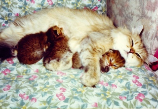 難産の末、何とか無事に出産しましたが、母乳の出が悪く、人口哺乳(カテーテル)で育てることに。子猫たちは免疫がなかったため、常に危険な状態で、成長も遅く苦労の連続でした。 3匹とも育ってくれたのが不思議なくらいです。 |