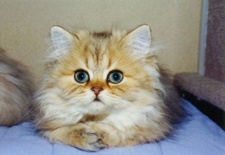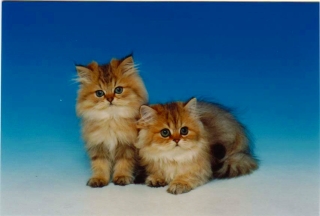 危ない時期を何度か乗り越えて、無事に2ヶ月を迎えた頃のアングル(右)とクロード(左)。 写真屋さんで撮ってもらった1枚です。 結局、シャガールもクロードも手放せなくなり、仲良し3兄弟は我が家の中心的存在に。 |