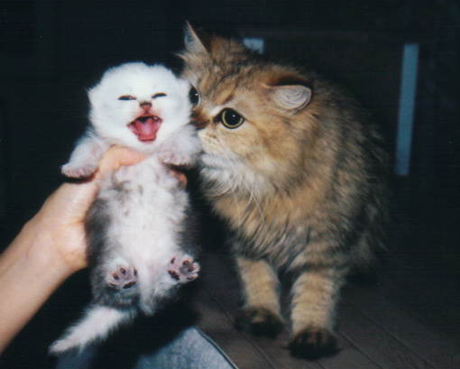 イスの上で、ちょっとおすましのポーズ。 まだまだ子供だと思っていたのに、1歳になってすぐ、(故)ロセッティとの間に子供を作ってしまいました。 それが、ブッキー&君子です。 |