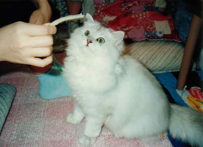 とうとうお別れの日がやって来ました。棺の中のカンちゃんに、みんな、思い思いに語りかけます。 「よくばんばったね!お疲れさま。」「生まれ変わっても、また家族になろうね。」 カンちゃんは、これからもみんなの心の中で行き続けます。 AB-Factory’s Alpha 1989年3月9日〜2001年11月9日 キャッテリーネームの”A”は、Alphaの”A”です。カンちゃん、12年と8ヶ月、本当にありがとう! カンちゃんは、一足早く、パパのところへ旅立ちました。 |