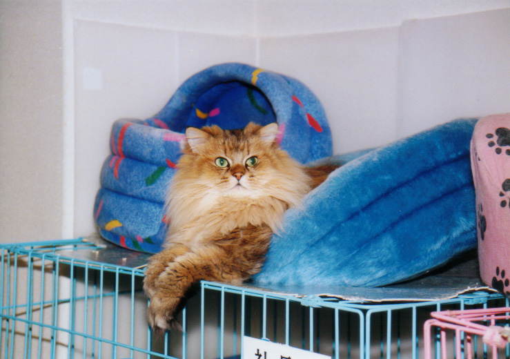 2003年9月 この頃から、血液検査で腎臓注意の黄信号が。全盛期6kg近くあった体重も、5.4kgに。 |