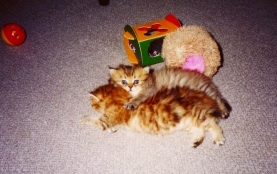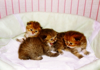 1992年6月、アングルとカンディンスキーの間に3匹の子猫が誕生しました。 はまぐり(右)、あさり(中央)、しじみ(後方)です。 |