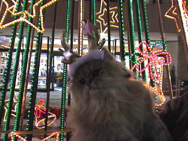 「電飾クリスマスツリーの前で記念撮影。 11歳には見えないあどけなさが魅力でしょう? でも、また、ワンちゃんに間違われた。」 |