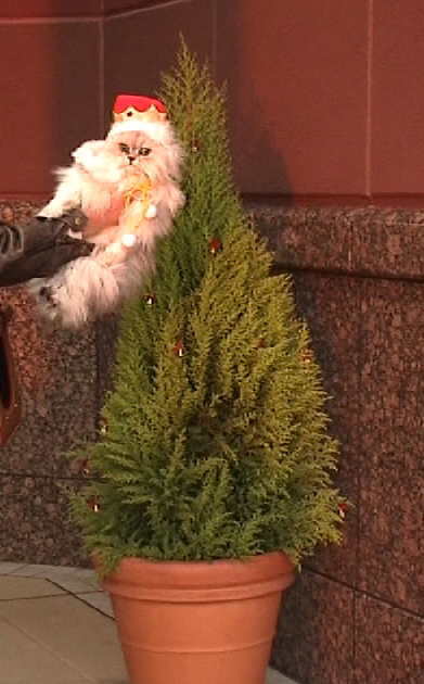 マコーレー「この帽子、重くて頭が痛いよ。サンタクロースに見えないんだってば! 早く撮影終了してよ。」 |