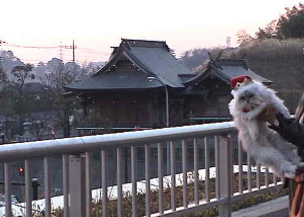 お寺をバックに記念撮影。 マコーレー「ほら、小さい子が喜んでいるから、早く行こう。恥ずかしいよ。」 |