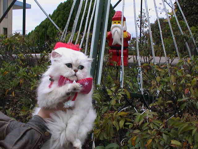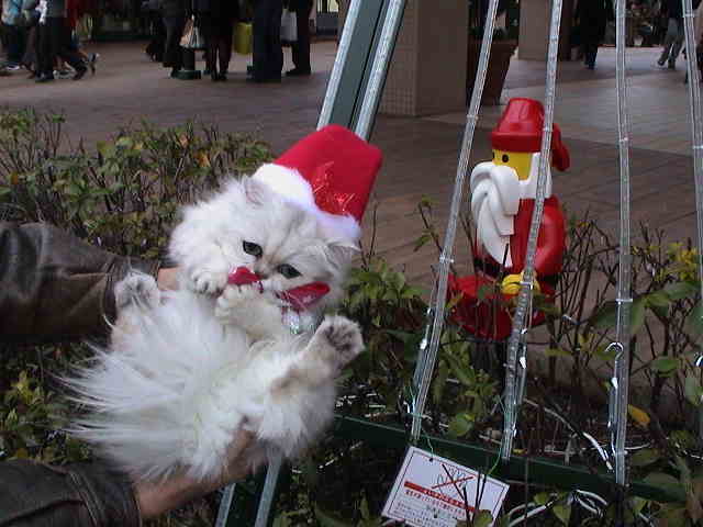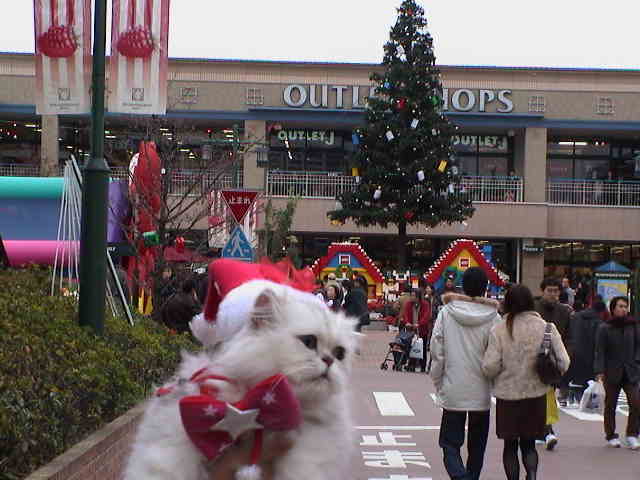 2003年11月24日 曇り グランベリーモールにて ブッキー「寒いわ〜。お手々がかじかんじゃう。それにしても、まだサンタさんになるのは早過ぎるわよ。恥ずかしいったらありゃしない。ブツブツ・・・」 |