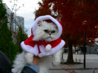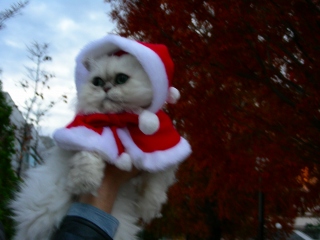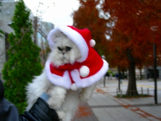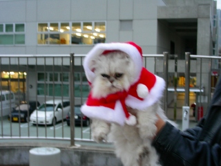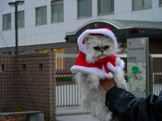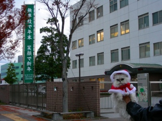 2006年12月10日(日) 都筑図書館前にて 君子「クリスマスには、まだちょっと早いけど、サンタやります。図書館に用があるから、この辺りでいいかな?」 |