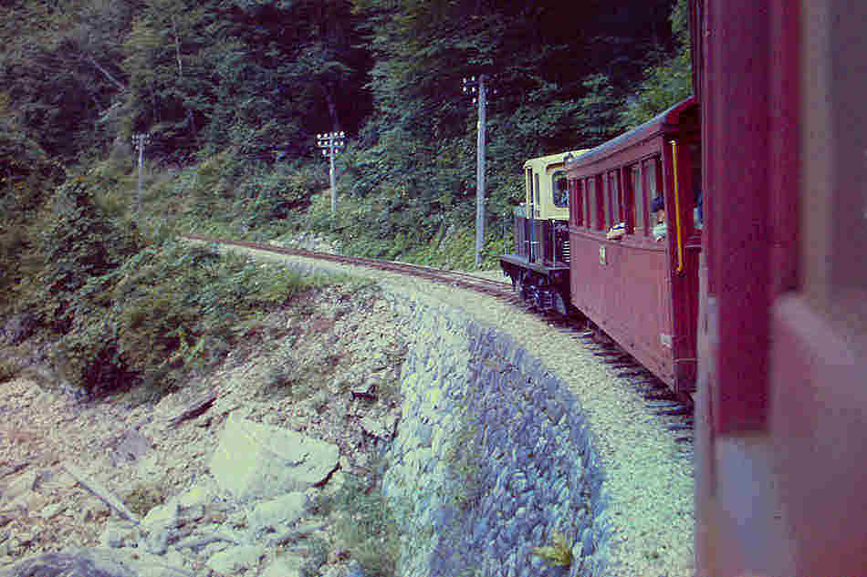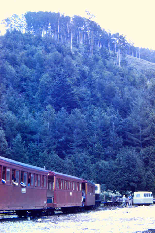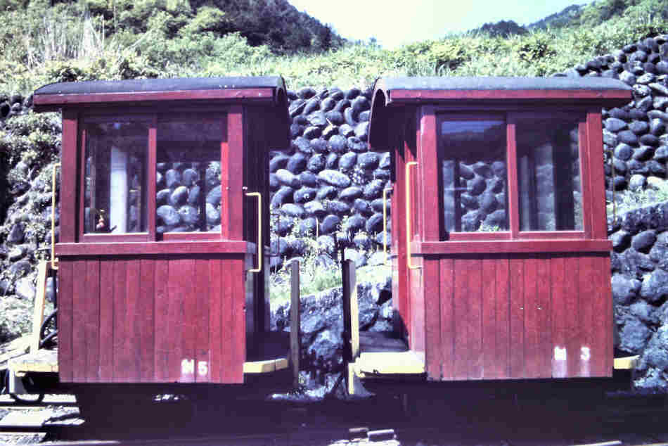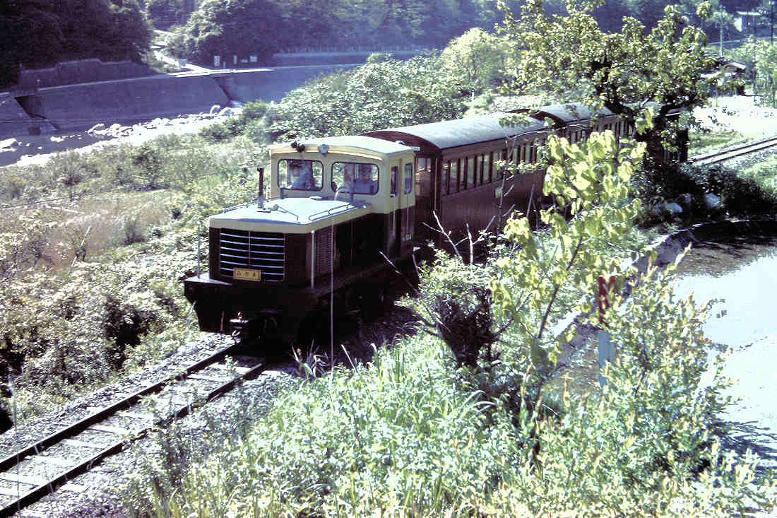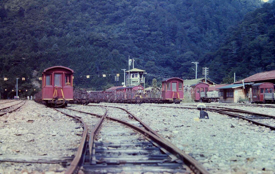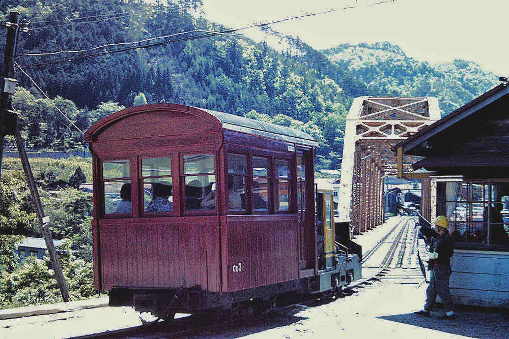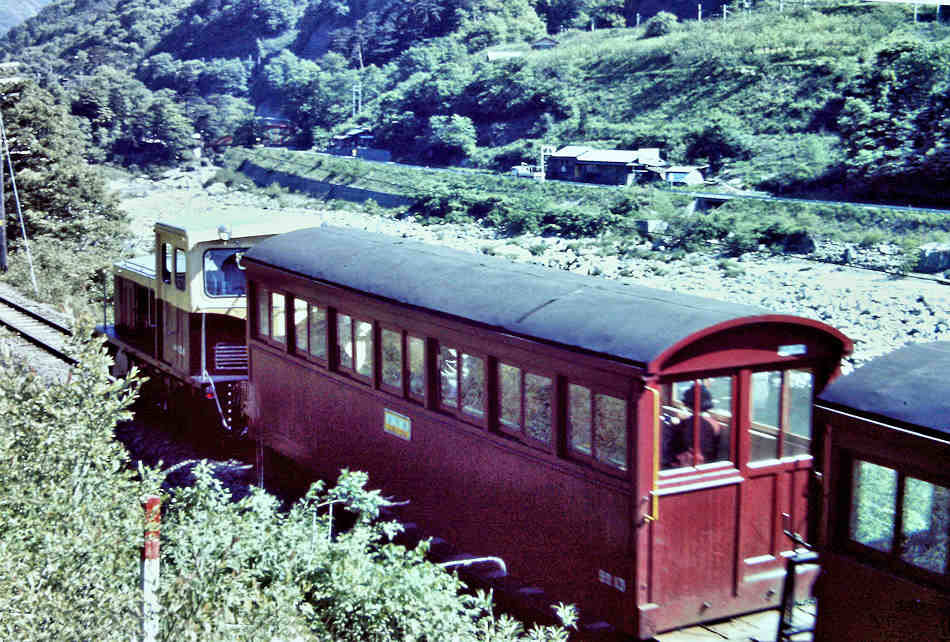 | 撮影者は1973年になんと3回も訪問しています。1回目は、同年5月で、施設、車両等に圧倒されたそうですが、撮影は上松近辺だけだったそうです。そして乗せてもらえないかと直談判で頼んだところ、ケンもホロロに断られたそうです。その後、終点に親戚がある人は乗せてもらえる、というローカルの情報を得て、再度チャレンジ。終点の本谷のほうは、姓が「三浦さん」が多いとのことで、2回目9月に再チャレンジしました。現地で「あの~三浦さんの家に行くので載せてもらえませんか?」と言って頼むと交渉成立になったということです。ウソも方便ですね。この時は載せてもらえたそうですが、「命の保証はありません」の誓約書にサインをして、とりあえずは乗車出来ました。3回目は更にもう一度11月に訪問して、田島まで乗ったそうです。ただ、もうその時の記憶は飛んでいるようです。 ここでは、理由はご披露しましたが、場所にとらわれず日付順に、アップしていきたいと思います。かなり退色してはいますが、カラーはイメージが更に新鮮になります。 |
