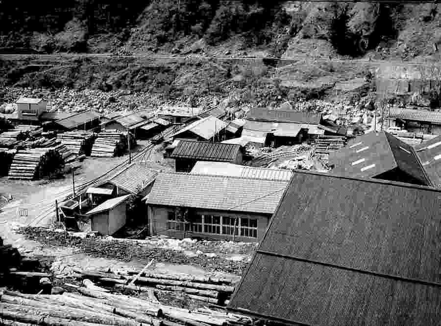 | 凄い貯木場ですね。休みでなければ、人々で賑わっていたことでしょう。こんなところまで、苦労して線路を敷いて、木材を上松まで搬送していたんですね。この俯瞰で、作業中を撮りたかったですね。 |