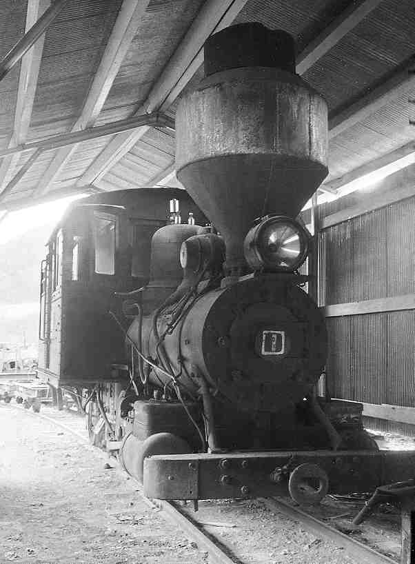 | これが有名な木曽森林鉄道のシンボルでもあった米ボールドウィン製の機関車です。1959年に引退しましたが、上松の倉庫でひっそり静態保存されていました。狭いところに押し込められ、撮るのに苦労したと思います。既に1号のナンバーや製造銘板は外され、ナンバーは全て手書きでした。どこでそれら本物を保管していたんでしょうね。 |