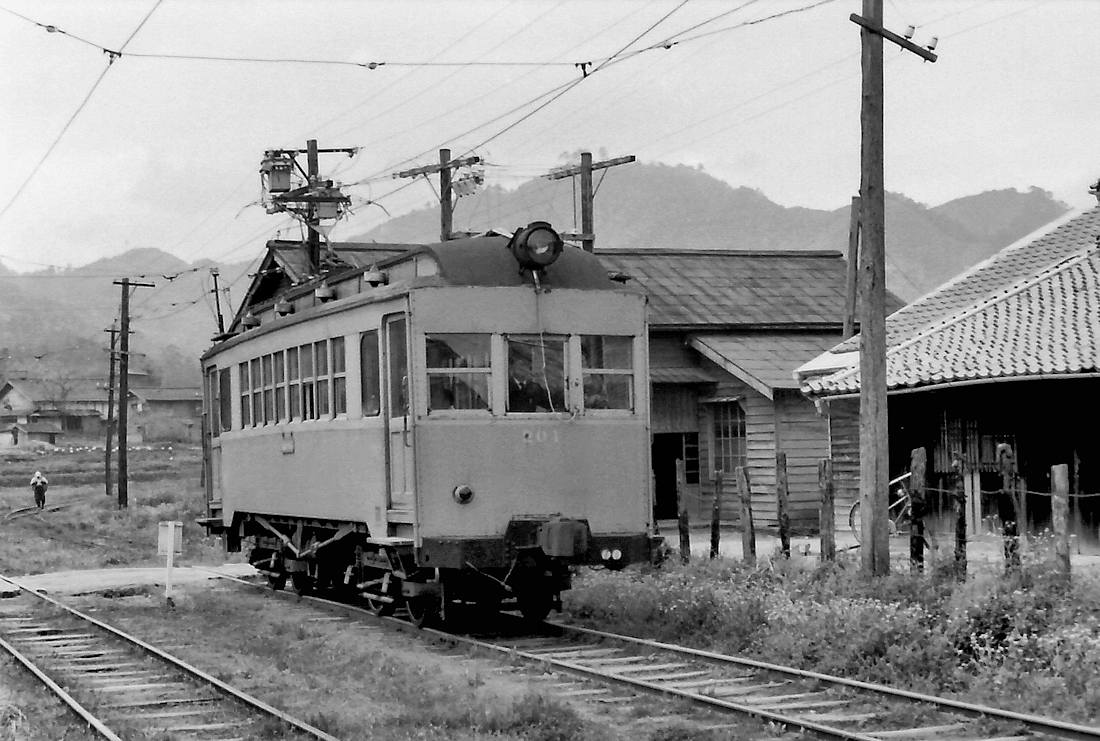 | 今回は、殆どの人は見ていないと思われる鉄道の投稿を編集してみました。実は、私も初めて知った鉄道と車両です。 実は、この写真はかつて、某鉄道誌に掲載されています。それにしても、私はこの鉄道の存在すら知りませんでした。今回写真を投稿頂いたFT氏にその鉄道雑誌に載った写真と紀行文のコピーを読んでみて、初めて詳細を知ることが出来ました。 簡単に説明しますと、鳥取県にあるバス運行を主としている「日ノ丸自動車会社」が運行していたローカル私鉄電車でした。大正13年に開業し、社名は法勝寺鉄道という名で単独の鉄道会社でしたが、その後幾多の変遷を経て、戦後の昭和28年に鳥取の大手バス会社「日ノ丸自動車」に吸収され、「日ノ丸自動車・法勝寺電鉄線」となりました。しかしその後、事故を含め、乗客減などの鉄道路線衰退のお決まりのコースをたどり、1967年(昭和42年)5月には最後まで残っていた米子市-法勝寺間が廃止となり、ここに鳥取に走っていた、私鉄電化路線は消滅したのです。 この路線が廃止になるという1か月前に、撮影者のFT氏は、この線を訪れています。ギリギリのところでよく米子まで行ったものと感心しますが、いずれにしても、貴重な鉄路と古典車両の最後の姿をカメラに納めることが出来ました。 氏は「廃止間際の休日にもかかわらず、ファンには一人も会わなかった」と語っています。伯備線には多くのファンが行っていたはずですが、この路線は殆ど注目されていなかった、ということなのでしょうか。 誰もいない路線を氏は、自由に乗り降りし、車庫にも邪魔されずに入り、思うように貴重写真を撮れたとは、今では信じられないことです。事実、色々調べても、殆どこれらの古典的電車にはヒットしません。 従って、電動車や付随車などの写真の説明は、先の鉄道誌には各車両の経緯も解説されていますが、ここでは複雑すぎるので敢えて省略します。 私は、このHPでも何回か書いているように、電動車が大好きなので、(国鉄で言うクモハ)中心に写真を掲載しました。しかもダブルルーフで本当に太陽光を取り入れていたか不明ですが、三角錐の灯りも残っています。 私の好きに写真を選定して貼っていますので、偏っている点はご容赦ください。そして、こんな素晴らしい電車が走っていたことを知っていただければ幸いです。 なお、車両等の詳細をお知りになりたい場合は、下記の文字で検索してください。 |