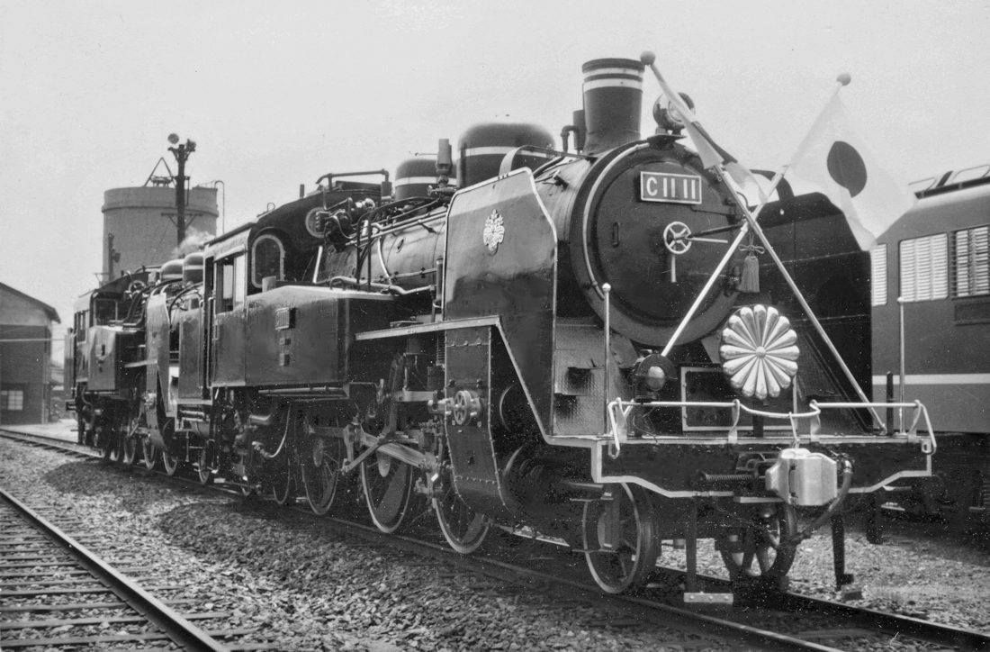 | 1965年5月10日に昭和天皇皇后両陛下鳥取県全国植樹祭(第16回)行幸啓のお召し列車が走りましたが、その時の牽引機に指定されたのがC1111でした。牽引は米子ー境港間 でしたが、3時間弱で折り返すため、上りの牽引機は別機C11342に交代しました。 この写真は、私が高校生のころ、鉄道友の会で知り合った大先輩の今井瑞雄氏が私にお送りくださった写真です。復路の上りの牽引機の342号も送っていただきましたが、本件とは関係がないので割愛いたします。 撮影:今井瑞雄氏 所蔵C6244 |