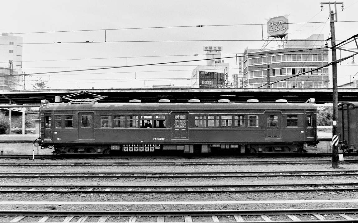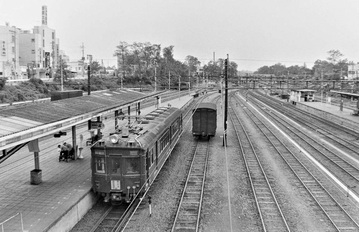 | まずは、出発駅である国分寺駅のクモハ40をご覧ください。1両で、東京競馬場との間を往復運転していました。 1973年3月 撮影HJ氏 |