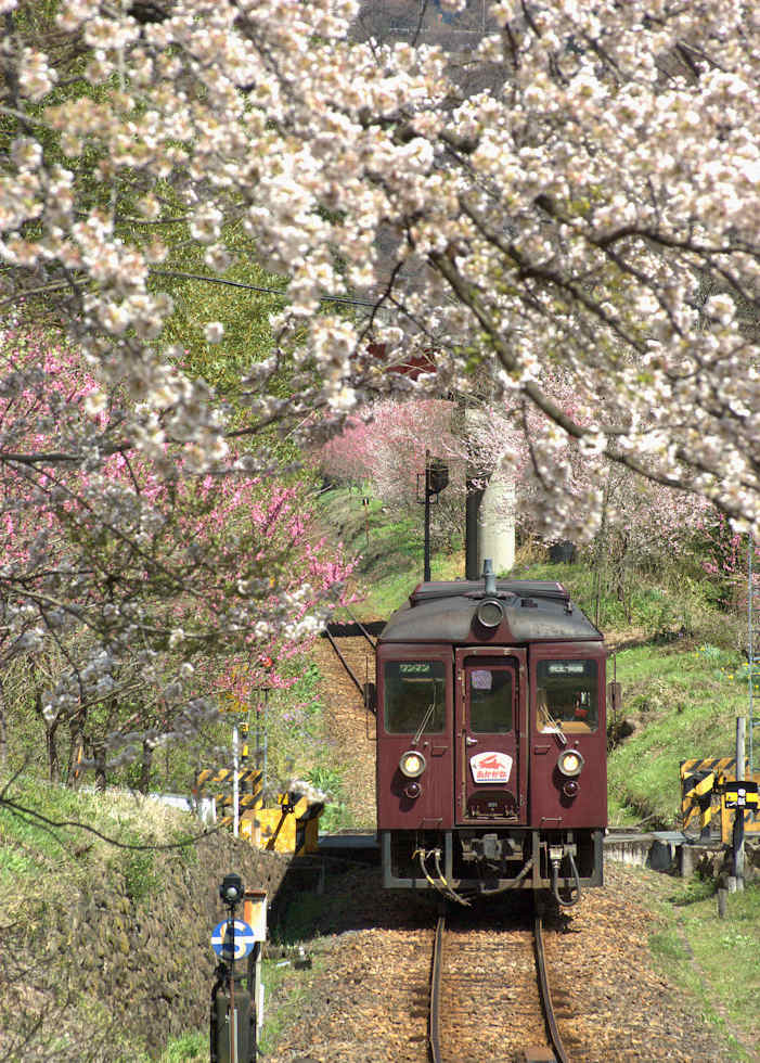 シルバーなめくじ会の仲間と春爛漫のわたらせ渓谷鉄道に行きました。今年の桜は雨が多くなかなか晴れのタイミングで出かけられなかったのですが、ちょっと早目の8日に決行。桐生では満開だった桜も神戸では二分咲きでした。それだけ標高が高いのですね。ちょっと残念でしたが代わりに桃が美しく咲いていたので、急遽モチーフを桃に切り替えて撮影です。3灯の車両もいいですね。 神戸〜沢入 |